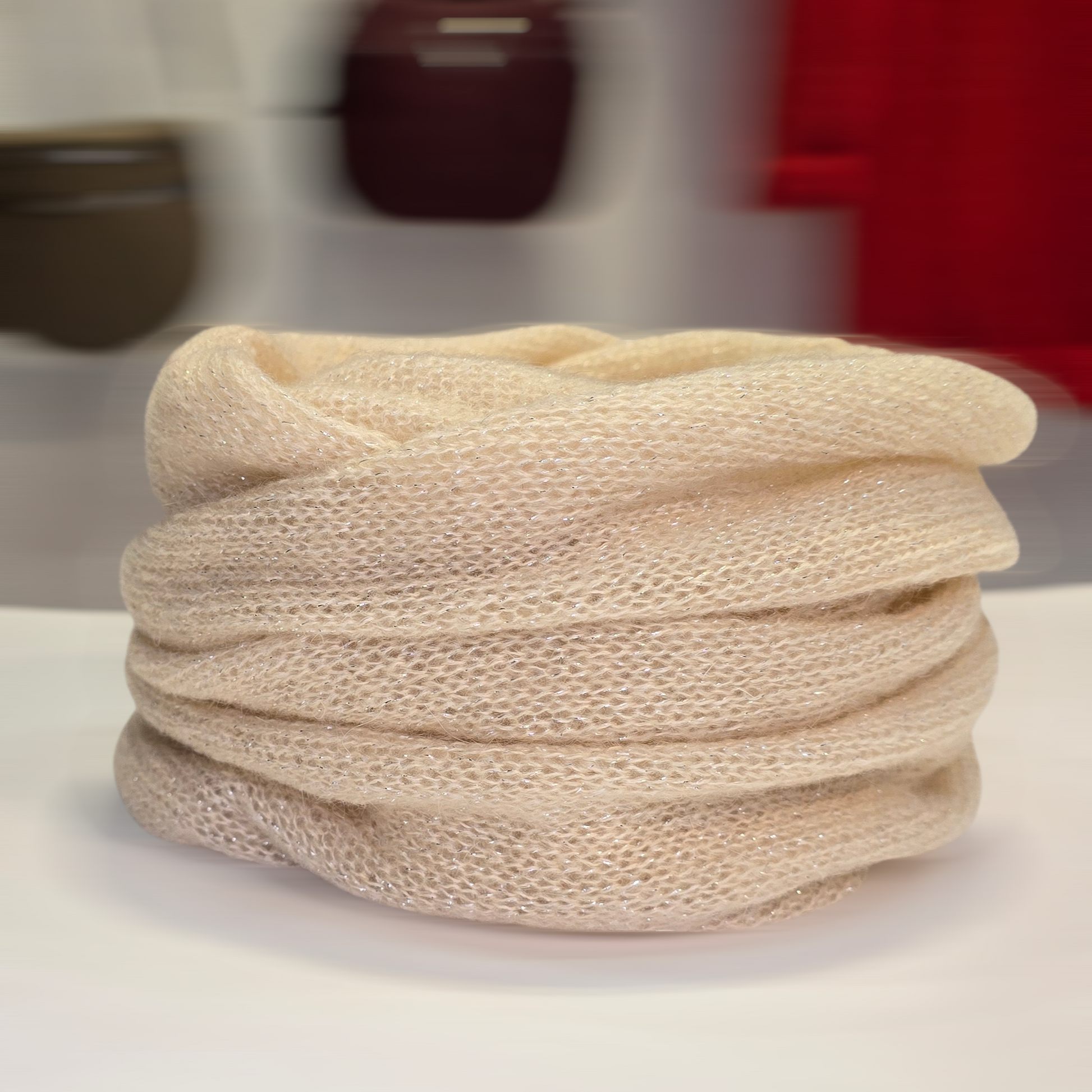 Champagnerfarbener, funkelnder Infinity-Schal