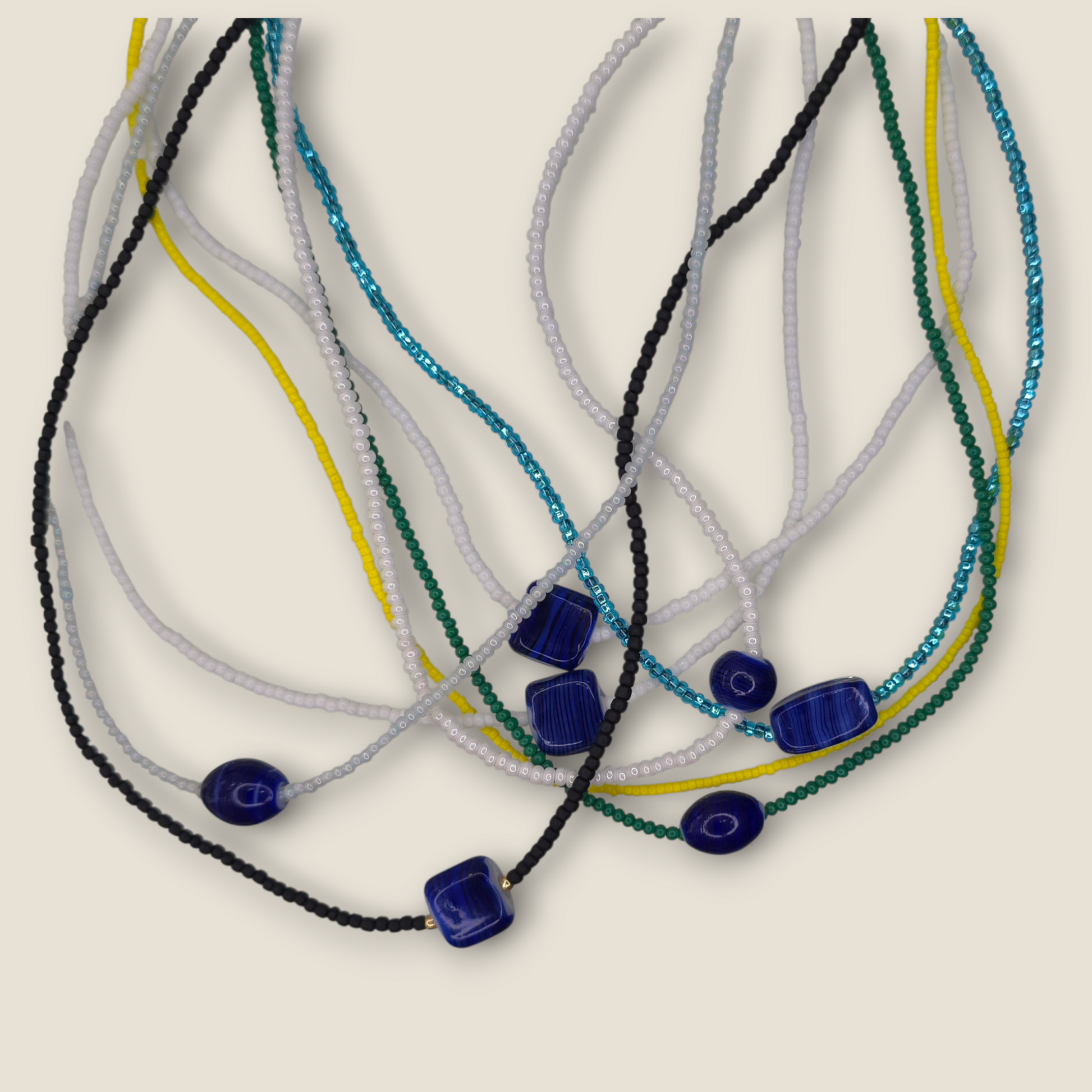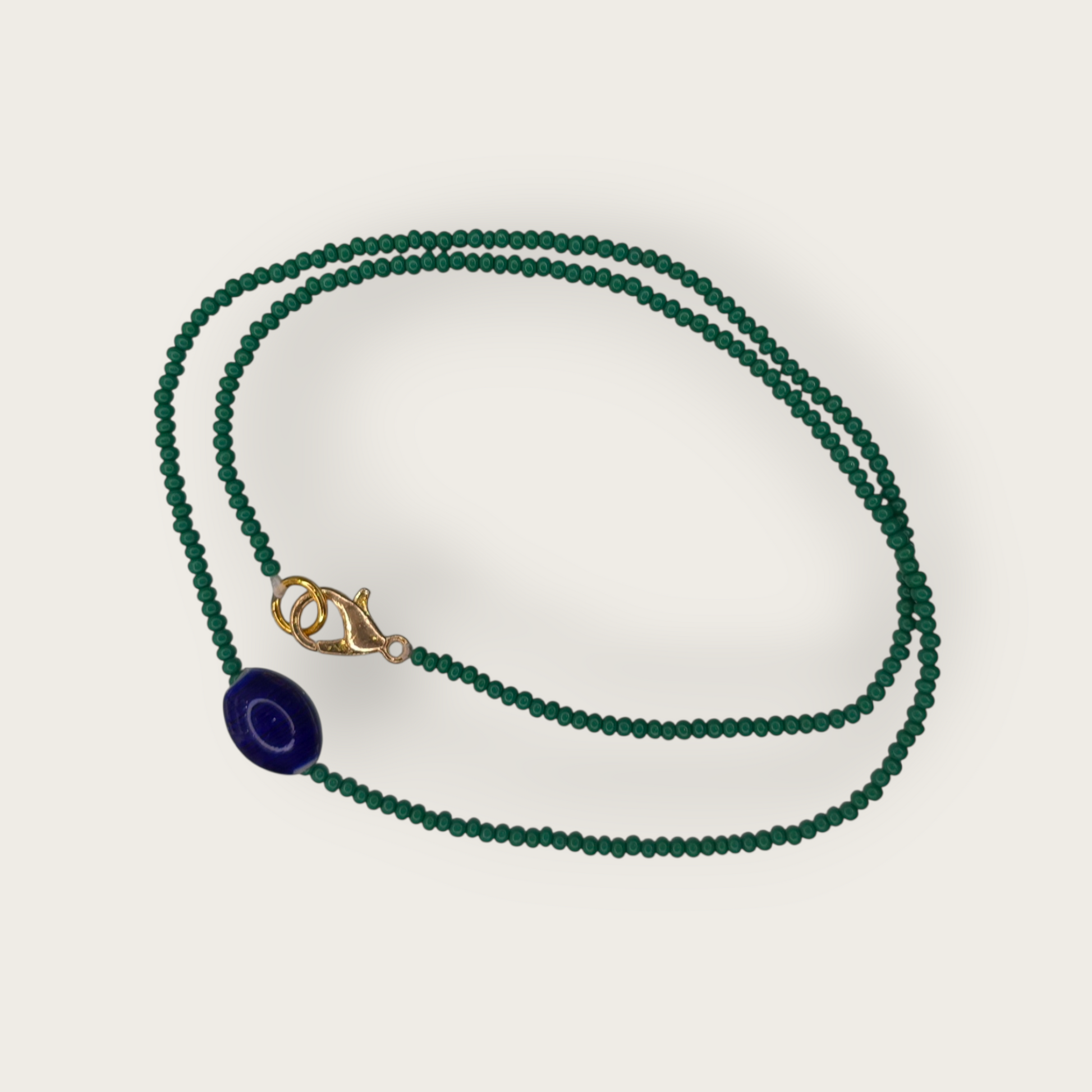 Zarte Glasperlen tanzen an dieser bezaubernden Halskette, deren Blickfang ein auffälliger blauer Keramikanhänger ist. Mit einem robusten Karabinerverschluss aus Messing versehen, kann sie sowohl einzeln als auch in Kombination mit anderen Schmuckstücken getragen werden – für einen individuellen Look. Sanft, farbenfroh und von müheloser Schönheit ist dieses Schmuckstück das perfekte Geschenk für Freunde und Familie. Oder Sie sichern sich gleich mehrere, um passende Sets zu kreieren und Ihre Verbundenheit zu feiern. Ob Sie sich selbst etwas Gutes tun oder Freude verbreiten möchten: Diese Halskette verleiht jedem Tag einen verspielten und persönlichen Touch.