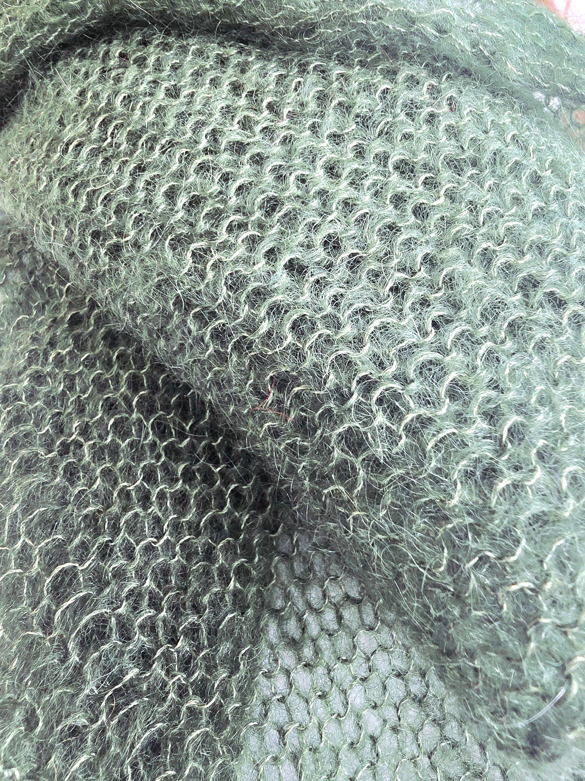 Großer, langer Strickschal aus Seidenmohair / Dunkelgrün