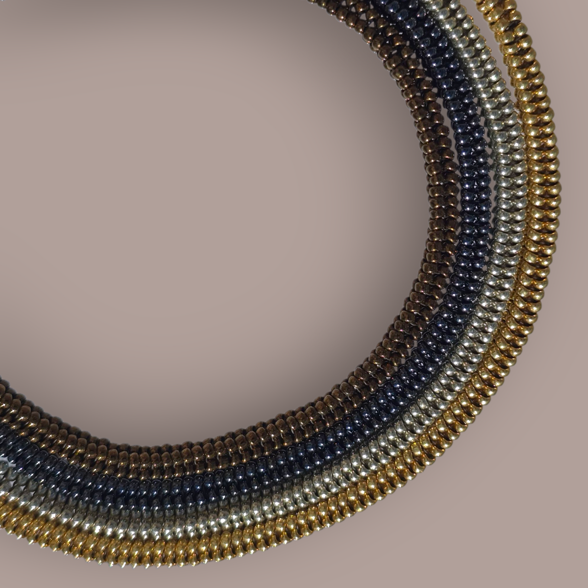 Necklace beaded with metallic bronze duracoat galvanized Japanese miyuki beads, chain finished with brass spring ring clasp in golden color. Length of this chain is 44cm